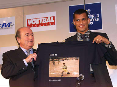圖文:里瓦爾多榮獲1999年世界最佳球員稱號(hào) 2000年1月25日 07:20 ![]() ![]() ![]() 布魯塞爾1月24日消息:西班牙巴塞羅那隊(duì)的巴西前鋒里瓦爾多24日被評(píng)選為國(guó)際足聯(lián)1999年世界最佳球員 。 據(jù)新華社報(bào)道,里瓦爾多在有140個(gè)國(guó)家隊(duì)教練參加的投票評(píng)選中獲得勝利,并成為繼羅馬里奧(1994年)和 羅納爾多(1996和1997年)之后第三個(gè)贏得這一殊榮的巴西球員。 英格蘭中場(chǎng)球員貝克漢姆和阿根廷的巴蒂斯圖塔在這次投票中,分別名列第二和第三。 里瓦爾多1999年為巴西贏得美洲杯賽冠軍和為巴塞羅那隊(duì)奪得西班牙甲級(jí)聯(lián)賽冠軍作出了杰出的貢獻(xiàn)。他上月還 被評(píng)選為1999年歐洲最佳球員。 里瓦爾多還被《世界足球》雜志的讀者評(píng)選為1999年世界最佳球員。 中國(guó)女子足球隊(duì)隊(duì)長(zhǎng)孫雯獲得了1999年女足最佳運(yùn)動(dòng)員獎(jiǎng),并領(lǐng)取了1999年世界杯女子足球賽金靴獎(jiǎng)。 |
