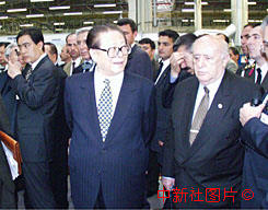 國家主席江澤民20日在土耳其總統(tǒng)德米雷爾的陪同下,參觀伊斯坦布爾的一家高科技公司。中新社記者 彭偉祥 攝