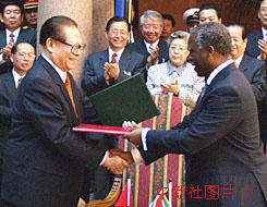 江澤民與姆貝基簽署宣言