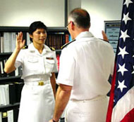 圖文:華人翁正欣將出任美太平洋司令部發(fā)言人 2001年6月4日 08:23 ![]() 中新網香港6月4日消息:幼年時自臺灣移民美國的現(xiàn)役美國海軍少校翁正欣,7月起將出任太平洋美軍司令部的新聞官。 據“中央社”報道,翁正欣生于云林水林鄉(xiāng),7歲隨父母移民美國。她說,她很高興到夏威夷任職,因為她的親戚都住在臺灣,而夏威夷離臺灣比較近。她十年前從美國海軍官校畢業(yè),今天晉升少校,同時領取華府天主教大學的政治學碩士學位。 翁正欣目前在五角大廈任職,職務是海軍新聞官。 她的父親翁義雄說,正欣選擇從軍,是因為他和太太以前在假日常到海軍官校所在地馬里蘭州安納波利斯,太太羨慕官校女生穿著白色制服非常帥氣的樣子,正欣便決定效法,進入海官就讀。翁義雄目前在馬里蘭州政府衛(wèi)生局任職。 翁正欣說,當時從臺灣移民美國很不容易,她自認能在美國成長非常幸運,而選擇從軍部份是想要報效這個國家。她的丈夫約翰·桑默是她在官校的學長。 |