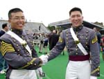 七華裔西點(diǎn)軍校畢業(yè)(附圖) 2001年6月4日 13:54 ![]() 洪偉杰(左)以第十五名的成績(jī)登畢業(yè)生榮譽(yù)榜,臺(tái)北市長(zhǎng)馬英九的外甥余靖(右)亦獲多項(xiàng)榮譽(yù) 中新網(wǎng)紐約6月3日消息:位于紐約上州的美國(guó)陸軍官校(西點(diǎn)軍校,United States Military Academy atWest Point) 2日在滂沱大雨中舉行2001年畢業(yè)典禮,901名應(yīng)屆畢業(yè)生中,有7名華裔子弟,其中洪偉杰以第十五名的成績(jī)登畢業(yè)生榮譽(yù)榜。 這七名華裔子弟是:洪偉杰、潘安驪、余靖、鄭建明、李之華、陳德凱(譯音)和楊丹尼爾(譯音),其中潘安驪是昨日唯一有華裔血統(tǒng)的女性畢業(yè)生,而余靖是臺(tái)北市長(zhǎng)馬英九的外甥。 |