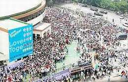 圖文:H.O.T.前成員生日 萬(wàn)名韓國(guó)歌迷齊赴宴 2001年6月7日 09:45 數(shù)千名歌迷為托尼•安的生日宴會(huì)而排長(zhǎng)隊(duì) 中新網(wǎng)漢城6月7日消息:昨日,12000多名韓國(guó)歌迷擁向著名組合H.O.T.前成員TONY•安的生日宴會(huì),不幸的是發(fā)生了幾十名歌迷虛脫的騷亂。 主辦單位H.O.T.歌迷俱樂(lè)部聯(lián)合會(huì)在5個(gè)出入口中,只開(kāi)了一個(gè)出入口,從當(dāng)天上午11點(diǎn)開(kāi)始以10名為單位進(jìn)行入場(chǎng),因而發(fā)生了長(zhǎng)時(shí)間曝曬的少女歌迷昏倒的事情。其中4人出現(xiàn)虛脫現(xiàn)象,被送往醫(yī)院;另有20多人也出現(xiàn)了呼吸困難和頭昏眼花等癥狀。 由于100多名會(huì)員自己主辦出現(xiàn)了準(zhǔn)備不足現(xiàn)象。主辦單位到了下午2點(diǎn)以后才開(kāi)放了3個(gè)出入口。 另外,從5日晚開(kāi)始露宿在街頭等候入場(chǎng)的一部分少女歌迷要求“趕快放我們?nèi)雸?chǎng)”,并打碎2樓玻璃窗,弄壞了大門。 雖然安排一個(gè)中隊(duì)警察和5輛119急救車,但是歌迷俱樂(lè)部會(huì)員看到歌迷昏倒,主動(dòng)把她們送往地下室等,一面穩(wěn)住她們,一面阻擋警察等的出入,護(hù)送醫(yī)院的工作一時(shí)受到了拖延。下午3點(diǎn)45分左右TONY•安登臺(tái)讀歌迷的來(lái)信、進(jìn)行質(zhì)疑回答,演唱歌曲等10分鐘左右后就結(jié)束。 據(jù)悉,這次活動(dòng)由反對(duì)HOT解體的HOT歌迷俱樂(lè)部聯(lián)合會(huì)直接租借體育館后舉辦的,歌迷俱樂(lè)部向每個(gè)會(huì)員收1000韓元的入場(chǎng)費(fèi)充當(dāng)400多萬(wàn)韓元的場(chǎng)地費(fèi)。 此間韓國(guó)中央日?qǐng)?bào)報(bào)道,一位因虛脫而被送往醫(yī)院的歌迷的母親說(shuō),“在上一次音樂(lè)會(huì)中也出現(xiàn)混亂現(xiàn)象,可這次又發(fā)生這種事情,真叫人難以理解! |