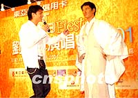 組圖:劉德華在港時(shí)代廣場(chǎng)為其蠟像揭幕 2001年06月30日 21:12 ![]() 香港著名男歌星劉德華30日在時(shí)代廣場(chǎng)為其蠟像揭幕。劉德華是首位獲倫敦杜莎夫人蠟像館制作的香港歌手。首次與自己的蠟像見面的劉德華欣喜的為蠟像整裝。中新社傳真洪少葵攝 ![]() 亞洲樂壇巨星劉德華30日在時(shí)代廣場(chǎng)為其蠟像揭幕時(shí),擁吻蠟像館外籍女工作人員,令其開心不已。中新社傳真洪少葵攝