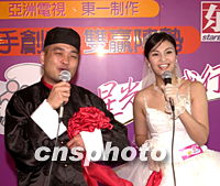 ![]() 香港亞洲電視·東一制作26日在香港舉行記者會,宣布攜手制作電視節(jié)目《省港傾情男女》。該節(jié)目將會為天下男女牽動紅線,招募中國大陸及香港男女參加的愛情搭檔節(jié)目。圖為該節(jié)目主持人葛民輝及姚安娜穿著傳統(tǒng)禮服婚紗介紹節(jié)目。中新社圖 鄧慶樂 攝