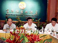 粵海鐵路通道加緊建設(shè) 2003年坐火車去海南 2001年09月03日 07:35 ![]() 9月2日上午,粵海鐵路通道建設(shè)領(lǐng)導(dǎo)小組第五次會議決定,粵海鐵路通道項(xiàng)目新增資本金七億元人民幣,海南島西環(huán)線即將全面開工建設(shè)。海南省官員汪嘯風(fēng)(左)、鐵道部副部長蔡慶華(中)、廣東省常務(wù)副省長歐廣源等出席了會議。中新社圖 王辛莉 攝