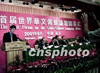 組圖:首屆世界華文傳媒論壇在南京開幕 2001年09月16日 14:42 ![]() 首屆世界華文傳媒論壇十六日在南京開幕,中國(guó)國(guó)務(wù)院僑務(wù)辦公室副主任兼中國(guó)新聞社社長(zhǎng)劉澤彭主持會(huì)議。中新社記者 王瑤 攝 ![]() 首屆世界華文傳媒論壇十六日在南京開幕,中國(guó)新聞社總編輯郭招金在開幕式上作《全球化浪潮中的海外傳媒的定位與角色》的發(fā)言。中新社記者 王瑤 攝