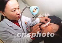圖:臺灣學生到北京醫(yī)學院實習 2001年11月05日 14:19 ![]() 臺灣學生日前在北京中醫(yī)藥大學第一臨床醫(yī)學院針灸科臨床實習。北京中醫(yī)藥大學一九九七年至今共招收三百零二名來自香港、澳門、臺灣的本科生、研究生,經(jīng)過五年的學習畢業(yè)后,將分別獲得醫(yī)學學士、醫(yī)學碩士、醫(yī)學博士等學位。中新社記者 張勤 攝 |