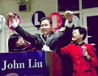 美國(guó)華裔參政開(kāi)新篇 六名華人在地方選舉獲勝 2001年11月08日 10:09 ![]() 三十四歲的華裔青年劉醇逸新當(dāng)選紐約市議員,成為美國(guó)歷史上第一位亞裔市議員。當(dāng)?shù)厝A人對(duì)其當(dāng)選同聲祝賀,認(rèn)為這是華人參政史上的一個(gè)新的里程碑。(劉醇逸生于臺(tái)灣,五歲跟隨家人移民紐約。)中新社記者 陳建 攝