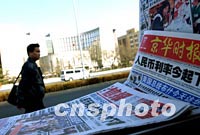 圖:人民幣利率今起下調(diào) 2002年02月21日 13:14 ![]() 一位市民二十一日經(jīng)過中國人民銀行北京總部前的一個報攤。為了克服世界經(jīng)濟(jì)增長持續(xù)放緩對中國經(jīng)濟(jì)發(fā)展帶來的不利影響,保持中國國民經(jīng)濟(jì)持續(xù)、快速、健康發(fā)展,中國人民銀行今起再次下調(diào)人民幣存、貸款利率。中新社圖 武仲林 攝