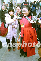 圖:政協(xié)委員龔如心吸引“兩會(huì)”記者 2002年03月03日 21:00 ![]() 全國(guó)政協(xié)九屆五次會(huì)議三日在北京人民大會(huì)堂開幕,政協(xié)委員、香港華貿(mào)董事局主席龔如心的亮麗衣著和獨(dú)特發(fā)型,吸引了大會(huì)堂前的記者。中新社圖 劉殊瑾 攝