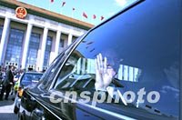 圖:美國使節(jié)驅(qū)車旁聽人大開幕會 2002年03月06日 17:06 ![]() 美國使節(jié)在北京人民大會堂旁聽九屆全國人大第五次會議后,驅(qū)車駛離天安門廣場。中新社記者 劉殊瑾 攝