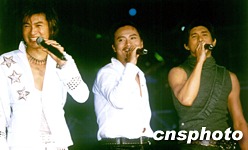多圖:"小虎隊"再聚齊 為蘇有朋演唱會助威 2002年03月23日 19:58 ![]() 蘇有朋入行以來首場個人演唱會,二十二日晚在上海大舞臺舉行。早已各自單飛的“霹靂虎”吳奇隆和“小帥虎”陳志朋特意趕來上海為“乖乖虎”助威。圖為三位昔日的“小虎”十一年后重聚申城舞臺。中新社圖 彥俊 攝