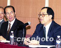 澳門(mén)特區(qū)政府與何鴻燊簽署18年博彩經(jīng)營(yíng)合約 2002年03月29日 06:18 ![]() 澳門(mén)特區(qū)政府與澳門(mén)博彩股份有限公司二十八日簽署博彩經(jīng)營(yíng)批給合同,圖為特區(qū)政府經(jīng)濟(jì)財(cái)政司司長(zhǎng)譚伯源與澳博公司董事長(zhǎng)何鴻燊在簽約儀式后共同舉行新聞發(fā)布會(huì)。中新社記者 宗金柱 攝