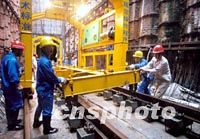 圖:廣州地鐵二號(hào)線首期開通段今年底建成通車 2002年04月01日 10:37 ![]() 廣州地鐵二號(hào)線首期開通段的三元里至?xí)愿鄱尉耪,將于今年底正式建成開通。圖為地鐵施工人員將排軌吊到幾層樓深的隧道下。中新社圖 謝展程 攝