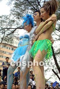 組圖:廣州街頭展示人體彩繪吸引眾多攝影發(fā)燒友 2002年04月06日 18:03 ![]() 廣州某攝影器材城為吸引顧客,六日上午在門口公開展示人體彩繪,吸引上百名發(fā)燒友前來拍攝。中新社圖 柯小軍 攝