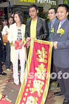 組圖:影星劉青云夫婦為實惠新店開幕剪彩 2002年04月20日 20:22 ![]() 影視紅星劉青云、郭藹明兩夫婦20日出席實惠家居用品新店開幕,實惠集團致送BB公仔予兩夫婦,喻意祝兩位早生貴子。劉青云為“BB”公仔試穿衣服,引得身旁的郭藹明哈哈大笑。鄧慶樂 攝