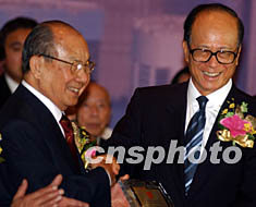 ![]() 擁有一百萬(wàn)潮藉人口、一百多個(gè)潮藉社團(tuán)的香港,4月23日成立了“香港潮屬社團(tuán)總會(huì)”, 主席陳偉男向出任榮譽(yù)會(huì)長(zhǎng)的香港長(zhǎng)實(shí)集團(tuán)主席李嘉誠(chéng)頒發(fā)證書(shū)。中新社記者 任晨鳴 攝