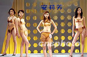 圖:上海國際服裝文化節(jié)上演時尚內(nèi)衣秀 2002年04月27日 09:02 ![]() 二○○二“中華杯安莉芳”國際內(nèi)衣設(shè)計大賽二十五日在上海世貿(mào)商城舉行。圖為模特在展示中外年輕設(shè)計師們設(shè)計的富有新意的內(nèi)衣。中新社圖 湯彥俊 攝
