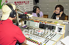 ![]() 歌星容祖兒7日在香港接受香港電臺“娛樂滿天星”訪問,“娛樂滿天星”兩位主持周國豐(背鏡者)、陳淑蘭問及祖兒最新動態(tài)。中新社圖 鄧慶樂 攝