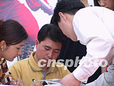 圖:“高空王子”阿迪力書市簽名義賣 2002年05月12日 18:38 ![]() 十二日,剛剛在高空創(chuàng)下新吉尼斯紀錄的“高空王子”阿迪力來到北京春季書市,為記錄他挑戰(zhàn)世界記錄的《驚心22天》一書首發(fā)簽名義賣。義賣收入和“阿迪力基金”中的一萬元將捐給因患癌癥急需社會救助的21歲北京姑娘趙晶。中新社記者 章永哲 攝