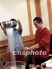 圖:譚盾演奏“多媒體音樂” 2002年05月17日 14:33 ![]() 剛剛獲得格萊美獎的知名音樂家譚盾十七日現(xiàn)身滬上,并帶來了他獨特的“多媒體音樂”。圖為譚盾通過自己發(fā)明的半球形透明水盆,和外國音樂家一起演奏《永恒之水協(xié)奏曲》。孫璐 攝