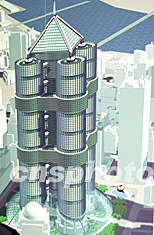 圖:紐約世貿(mào)大樓重建設(shè)計層出不窮 2002年05月21日 09:34 ![]() 隨著世貿(mào)廢墟清理工作接近結(jié)束,有關(guān)世貿(mào)大樓重建的設(shè)計開始引人注目,設(shè)計方案層出不窮。日前,巴哈馬的新西蘭商人德里克在紐約把來自夢中的創(chuàng)意展現(xiàn)給公眾,環(huán)狀、杯狀以及瓶蓋形狀是這一設(shè)計的最初幾何元素。經(jīng)過專業(yè)建筑師的修飾,人們現(xiàn)在看到的是一個一百一十一層高、帶著“金字塔”帽子、由四個圓柱型塔樓組成的醒目的建筑體。趙海燕 攝