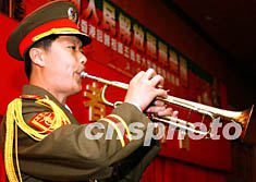 由150人組成的中國人民解放軍軍樂團強大陣容,7月6日晚將在香港紅磡體育館演出。7月4日下午,曾在1997年7月1日香港回歸時擔(dān)任樂手的小號手朱海少校為來賓做示范表演。任晨鳴 攝
