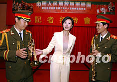 香港亞視當(dāng)紅主持人朱慧珊,7月4日出席中國人民解放軍軍樂團記者會,她將主持7月6日晚在香港紅磡體育館舉行的中國人民解放軍軍樂團演出晚會。任晨鳴 攝
