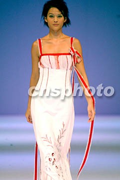 圖:香港設(shè)計(jì)師鄭兆良的“仿旗袍天女下凡裝” 2002年07月12日 10:09 ![]() “2003香港春夏時(shí)裝節(jié)”7月10日晚舉行香港十位頂尖設(shè)計(jì)師作品展示,模特展示著名設(shè)計(jì)師鄭兆良設(shè)計(jì)的一款仿旗袍低胸配紅長(zhǎng)飄帶女裙,恍如天女下凡。任晨鳴 攝