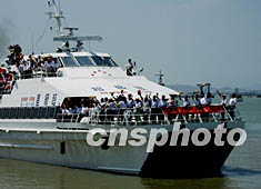 ![]() 七月二十五日下午,乘載泉州天后宮媽祖金身的臺(tái)灣“超級(jí)星”號(hào)客輪駛離泉州后渚港,直航返回澎湖。作者:華小銳