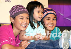 ![]() 樂壇女子組合Twins兩位成員蔡卓妍(右)、鍾欣桐8日1日在香港舉行「愛上色彩之歷險(xiǎn)」寫真集簽名會(huì),大批Twins歌迷到場支持偶像,Twins被一位可愛的小女孩吸引合照。鄧慶樂 攝