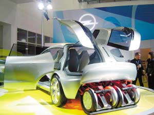 Opel歐寶Flextreme“飛靈”概念車出自通用汽車全球E-Flex電氣化平臺,展示了歐寶在清潔能源領(lǐng)域的先進(jìn)科技,并預(yù)見了這個品牌未來設(shè)計的新趨勢。多項(xiàng)令人驚喜的創(chuàng)新設(shè)計完美地演繹了歐寶品牌的精髓——將靈活、實(shí)用同引人入勝的設(shè)計相結(jié)合。這一理念體現(xiàn)在歐寶展臺的每一款車型上:Astra雅特TwinTop獨(dú)特的三段式硬頂設(shè)計,Astra雅特GTC Panorama延伸至B柱的全景玻璃風(fēng)擋及Zafira賽飛利全球首創(chuàng)的Flex 7“七巧空間”。