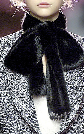 用領(lǐng)巾在頸間系個(gè)蝴蝶結(jié)是增加女性風(fēng)情最簡(jiǎn)單直接的方法,而YSL就特別在選用皮毛的材質(zhì),女人味與溫暖高貴并存。