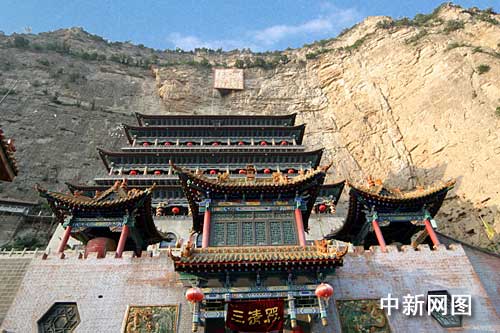 雄偉壯麗的大羅宮,兩側(cè)是神秘奇險(xiǎn)的白云洞和白云庵。白云洞位于大羅宮北側(cè),百米崖壁上有一洞口,柴扉半啟,是資深高道閉關(guān)辟谷之所。這里,陰雨前常有白云飄出,故稱白云洞。清代乾隆年間介休名士王佑曾賦“深山多白云,洞在云深處,竟日寂無(wú)人,白云自來(lái)去”的詩(shī)句,道出了這一景觀的奇妙和獨(dú)特。白云庵深藏于百米懸崖上一天然石洞中,內(nèi)有釋迦牟尼和文殊、普賢塑像,為宋代風(fēng)格。塑像身后有6塊0.6平方米的石板,上面刻有《金剛經(jīng)》經(jīng)文,雖年深日久,但保存基本完好。在此原無(wú)徑可尋的懸崖絕壁之上造像、勒石,其難度之大可想而知。古人那種不畏艱險(xiǎn)的執(zhí)著追求,不禁使人嘆服!現(xiàn)在已筑起了懸空通道,供游客觀賞此庵。