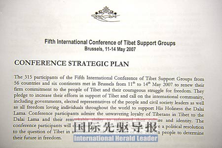 去年5月,在西方勢(shì)力的支持下,達(dá)賴集團(tuán)在布魯塞爾舉行的第五次“支援西藏組織國(guó)際大會(huì)”上制訂了針對(duì)北京奧運(yùn)的“路線圖計(jì)劃”,并將矛頭明確指向奧運(yùn)圣火傳遞!秶(guó)際先驅(qū)導(dǎo)報(bào)》記者當(dāng)時(shí)在布魯塞爾采訪了這次大會(huì),整個(gè)事件的情況如今依然歷歷在目。