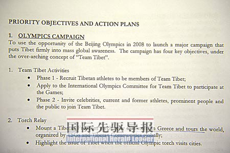 “行動(dòng)計(jì)劃”將針對(duì)北京奧運(yùn)會(huì)采取行動(dòng)列為第一點(diǎn)。文件提出該行動(dòng)有4大目標(biāo),并要在全球范圍內(nèi)招募人員組建一個(gè)名為“西藏之隊(duì)”(Team Tibet)的隊(duì)伍,專門針對(duì)奧運(yùn)會(huì)采取行動(dòng),目標(biāo)人員包括“知名人士、現(xiàn)役和退役運(yùn)動(dòng)員、杰出人士和民眾”。現(xiàn)在看來,連搶金晶火炬的洛桑·甘丹這類暴徒也是“西藏之隊(duì)”網(wǎng)羅的對(duì)象。