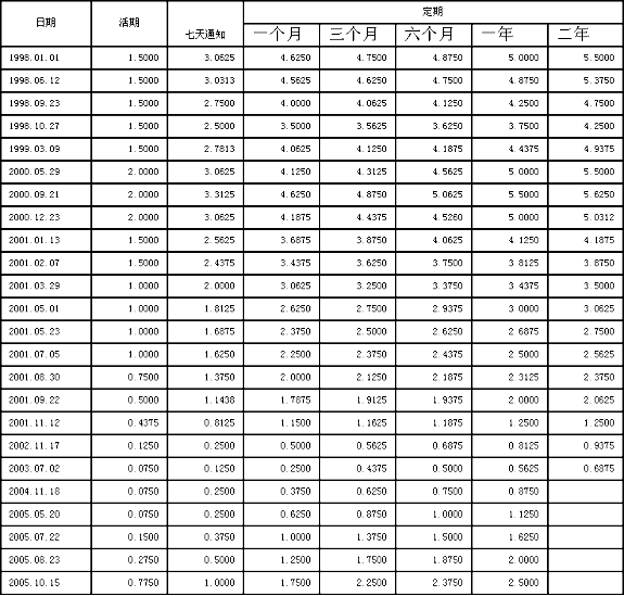據(jù)顯示,98年以來,中國對境內(nèi)美元存款利率調(diào)整了24次。10月15日,境內(nèi)美元活期存款利率調(diào)整為0.7750%。定期一個月、三個月、六個月、一年利率分別調(diào)整為1.75%、2.25%、2.375%和2.5%,這次是2005年的第四次調(diào)整,比8月23日調(diào)整后的利率再次提高0.5%。
