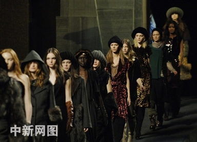 2006年2月6日,紐約時(shí)裝周,模特在展示Marc Jacobs設(shè)計(jì)的新款秋裝。華麗的細(xì)節(jié)使Marc Jacobs的作品總能奪目而不夸張。時(shí)尚的風(fēng)向已經(jīng)從對(duì)奢華永無止境的追求變成了現(xiàn)在的簡(jiǎn)單低調(diào)。設(shè)計(jì)師不再大面積使用皮草,而是將其作為點(diǎn)綴,使時(shí)裝展現(xiàn)出低調(diào)的奢華。