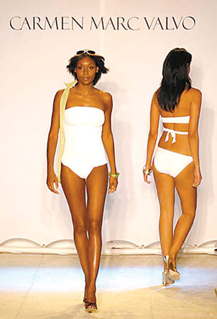 中新網(wǎng)4月13日電 據(jù)廣州日?qǐng)?bào)報(bào)道,早在上個(gè)季末各大時(shí)裝周發(fā)布2006年春夏時(shí)裝上,Gucci、JeanPaulGaultier等國(guó)際大品牌和設(shè)計(jì)師便已經(jīng)將精心設(shè)計(jì)的泳裝新款呈現(xiàn)于觀眾面前。隨著夏天的臨近,從近期巴塞羅那、里約熱內(nèi)盧的泳裝秀上看到,今年春夏的泳裝新品更加年輕化,其中,年輕美眉熱愛的清純、度假、叢林以及鄉(xiāng)村這四大風(fēng)格的泳裝備受關(guān)注。
