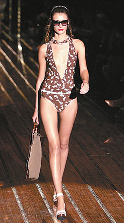 2006年春夏依然是一個(gè)花朵爛漫的季節(jié),不過去年流行的大花紋的暖色系泳裝卻被低調(diào)的細(xì)密碎花所替代,這源自于設(shè)計(jì)師們的鄉(xiāng)村生活體驗(yàn)。