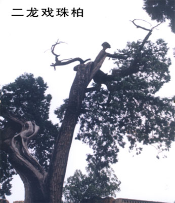 另外還有“猴子倒掛”、“干枝梅”“飛檐走壁”等古柏,個個形象逼真,姿態(tài)各異。