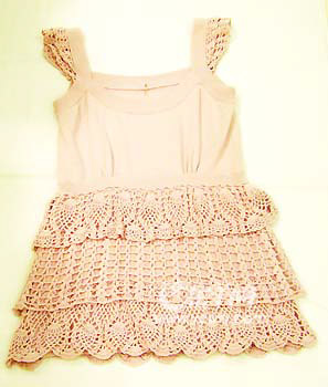 圖1:AnnaSui以面料混搭的針織小背心配飄逸的花瓣裙,彌漫法國(guó)式的浪漫田園風(fēng)。