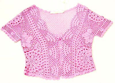 圖5:特別的鏤空編織內(nèi)衣與輕薄的鏤空針織外套搭配,令MichikoKoshino的模特倍顯飄逸。