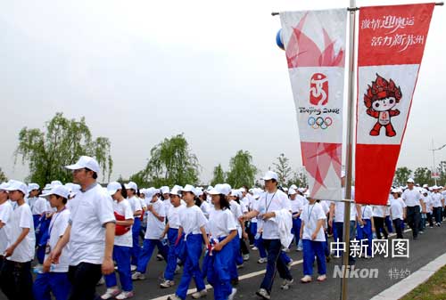 活動(dòng)一開始,2008位蘇州市民徒步行走2008米路程。在起點(diǎn)2008位活動(dòng)參與者分別身著紅色和白色服裝,用人體多米諾拼成北京奧運(yùn)會(huì)會(huì)徽中國印的圖案。整個(gè)路程分為五段:紅色激情,藍(lán)色夢想,綠色生活,黑色幽默,金色收獲。