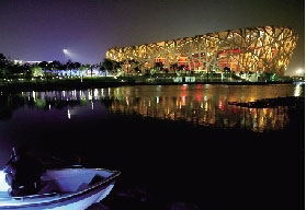 組圖:“鳥巢”首次全身亮燈彩排 并試放禮花(4)