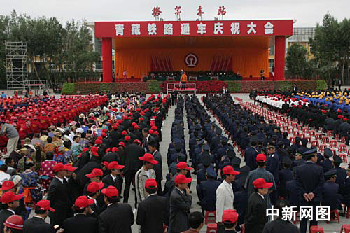 據(jù)中新社報道,通車慶典的主會場——格爾木火車站廣場上目前已是花團錦簇,奧運五環(huán)標志和福娃“迎迎”在花叢中笑迎各方賓客。慶典的最后彩排工作正在一片鑼鼓聲中漸趨熱烈,隨風飄揚的中國式紅色彩旗、條幅亦是隨處可見。
