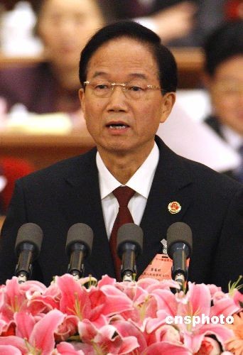 圖:賈春旺在全國(guó)人大第三次全體會(huì)作高檢工作報(bào)告