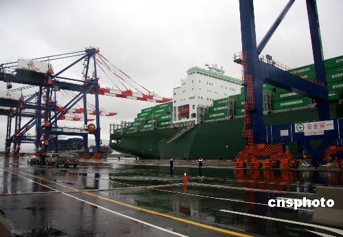 3月9日上午,位于臺北縣八里的臺北港貨柜儲運中心正式啟用營運。中新社發(fā) 陳立宇 攝