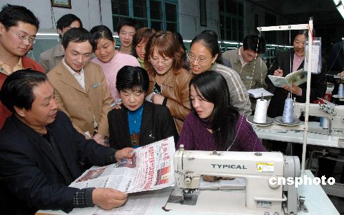 10月22日晚,山西運(yùn)城一民營(yíng)企業(yè)的員工在車間學(xué)習(xí)“十七大”會(huì)議精神,并進(jìn)行討論發(fā)言。中新社發(fā) 黃文鵬 攝
