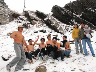 玉山迎來今年第一場雪 市民光膀子撒歡(圖)